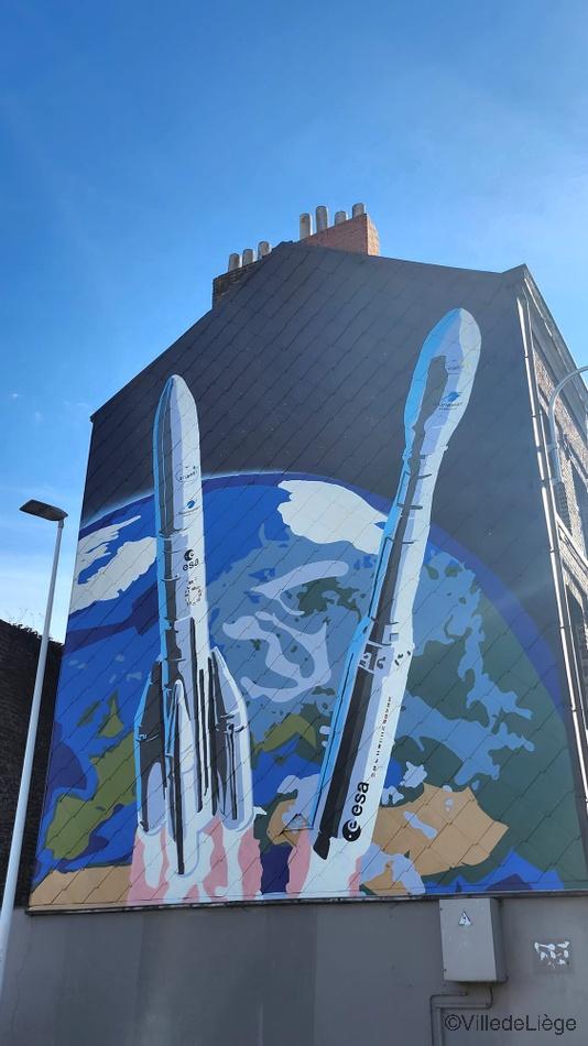 En 2001, la ville de Liège a rejoint la Communauté des Villes Ariane et s'efforce depuis, avec les différents partenaires, de promouvoir l'expertise locale dans le domaine aérospatial. Pour accroître la visibilité du secteur spatial européen, la fresque représentant les lanceurs européens Ariane 6 et Véga-C a été inaugurée le 8 octobre 2024, pendant la semaine mondiale de l'espace. La fresque remplace la peinture murale « Inside Magritte » qui avait été réalisée dans le cadre de l'exposition organisée en 2021 à La Boverie.Artiste