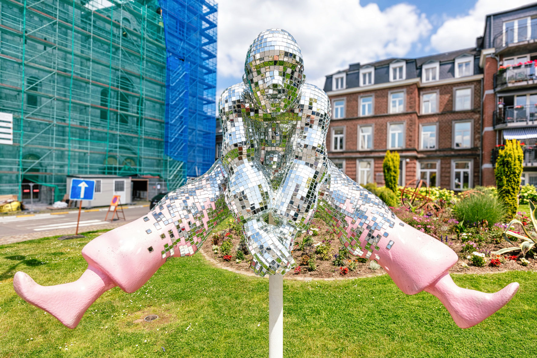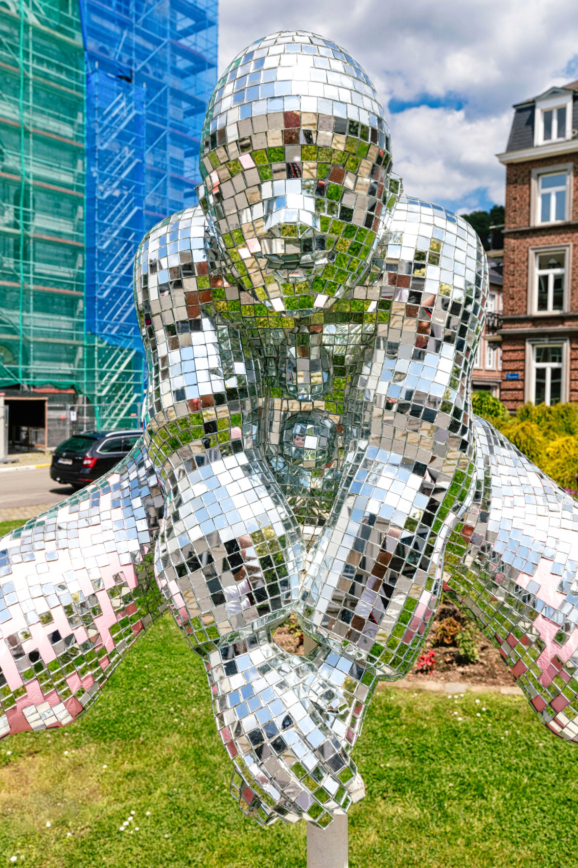 Symbole fort de la Ville de Spa, l’eau et ses reflets nous baladent entre l’âme et la pensée. Ce Pierrot aux mille éclats nous renvoie vers nous-même, vers la conscience de soi.