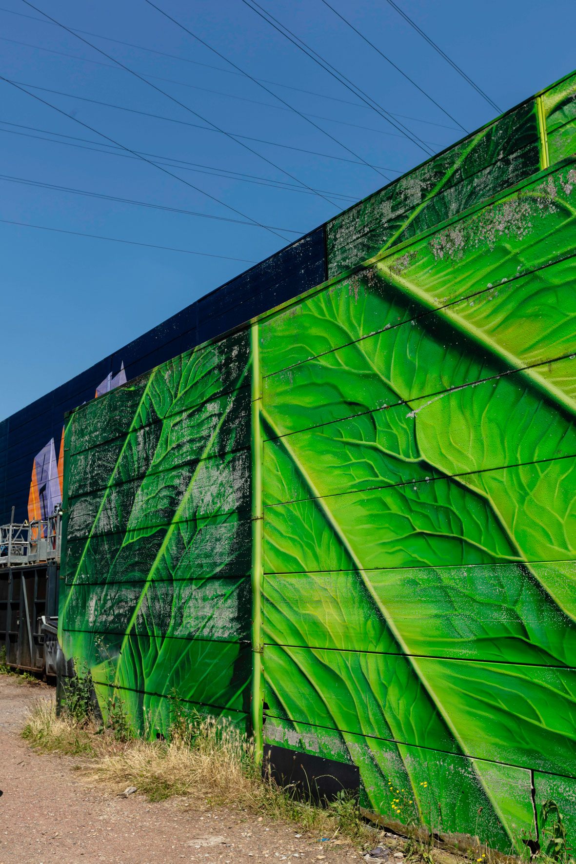 Elle peint des œuvres sur toiles mais également de monumentales fresques murales dans l’espace public en Belgique et à l’international.
