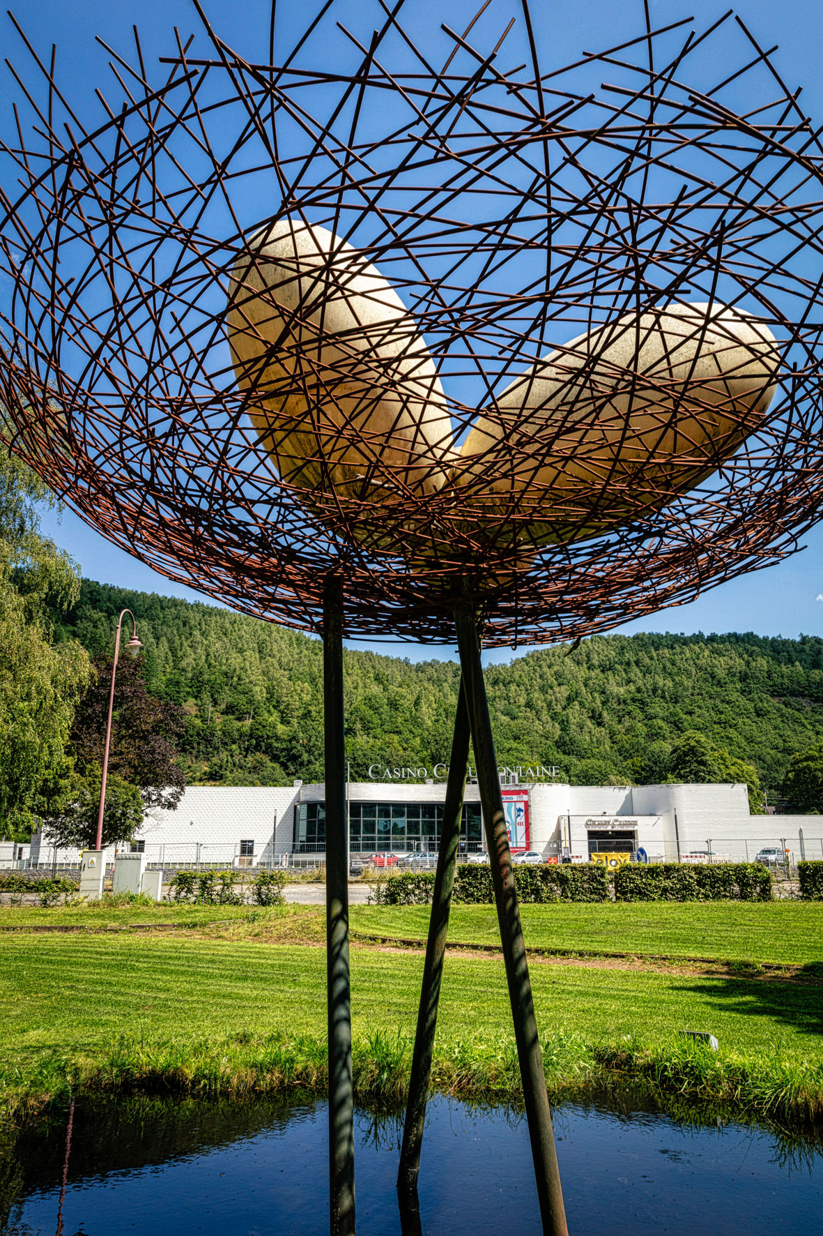 Festival des 5 saisons : Le Festival des cinq saisons, créé en 2010 à l’initiative de la Commune de Chaudfontaine, est le seul événement permanent dédié à la création contemporaine paysagère et artistique en Belgique. À travers l’installation d’œuvres d’art et la conception de jardins thématiques, il sensibilise un large public à la nécessité de préserver et de valoriser notre environnement. Le Festival des cinq saisons fait aussi découvrir de manière inédite la création artistique actuelle et les préoccupations environnementales de plasticiens contemporains. Intégré dans un écosystème de la vallée de la Vesdre, le Parc des Sources et le Parc de Hauster sont des lieux uniques et remarquables. Ce dernier est devenu un maillon important et central de la réflexion sur le développement durable de la région. Avec ses arbres admirables, ses jolis petits ponts, ce microcosme magnifique suscite l’imaginaire et la créativité des artistes. Dans de tels lieux, l’intégration d’œuvres d’art se fait dans le plus profond respect de la nature. Les parcs ne servent pas de toile de fond aux œuvres, ils dialoguent avec elles et tendent à former un tout cohérent. L’intention est de valoriser l’environnement naturel en nous amenant à le considérer d’un regard renouvelé, à nous questionner sur les liens que nous entretenons avec lui, à nous rendre attentif aux infimes transformations et aux effets du passage des saisons et du temps. Ne nourrissant pas une approche catastrophiste, les œuvres, au contraire, veulent révéler le rôle et l’implication de tous au quotidien pour préserver les équilibres environnementaux. L’ambition dans le choix des œuvres est de fédérer les amateurs d’art contemporain, les promeneurs, les touristes, les amoureux de la faune et de la flore et le jeune public… Le souhait est de sortir l’art d’aujourd’hui du cadre habituel des expositions, parfois visitées par un cercle restreint et d’aller directement à la rencontre de tous les publics fréquentant les parcs, y compris ceux qui sont plus éloignés de la création actuelle. Ces œuvres dans l’espace public ambitionnent donc de mettre véritablement l’art à la portée de tous.Artiste