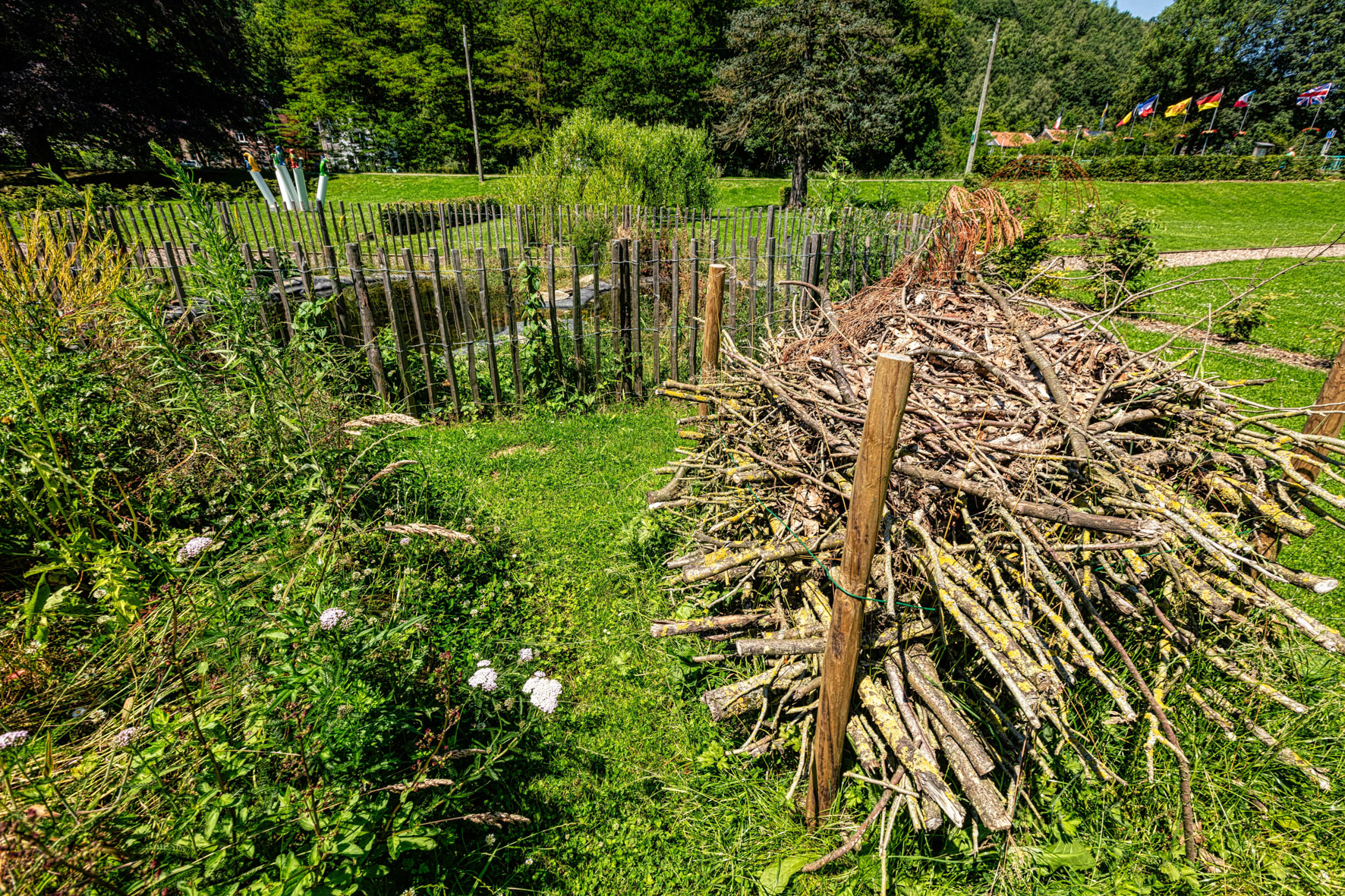 A Chaudfontaine, l’installation est, tout abord, constituée d’un jeu d'arches obliques réalisé en saule.