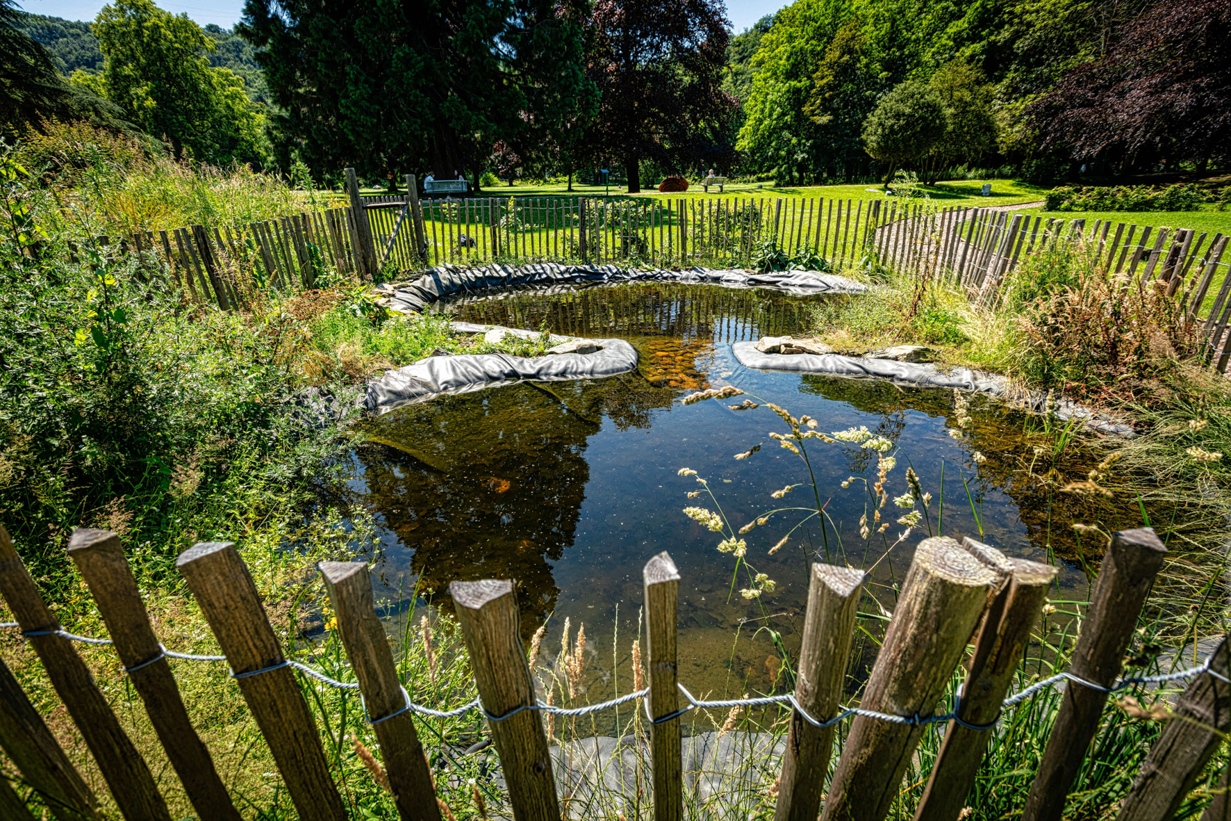 Ce labyrinthe ludique et vivant invite le public à une déambulation. A proximité, des bancs de forme courbe se répondent comme des causeuses et invitent les promeneurs à s’arrêter, échanger et se reposer. Leur assise est constituée de pavés liés par un mélange de terre et de paille, perpétuant la tradition ancestrale du torchis revisitée par l’écoconstruction contemporaine. Des plantes résistantes comme des sédums se glissent dans les interstices.