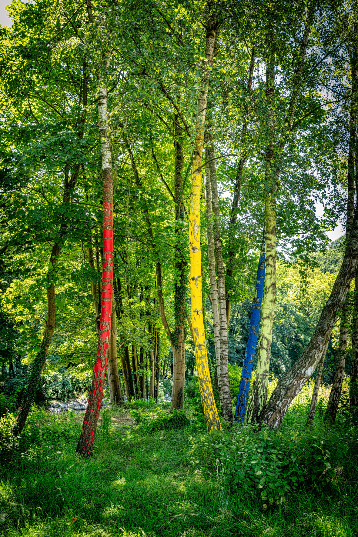 L’analogie est évidente, les arbres semblent presque avoir été plantés à cette fin. Le choix rigoureux des couleurs a permis de s’assurer de leurs qualités respirantes et bio-compatibles.