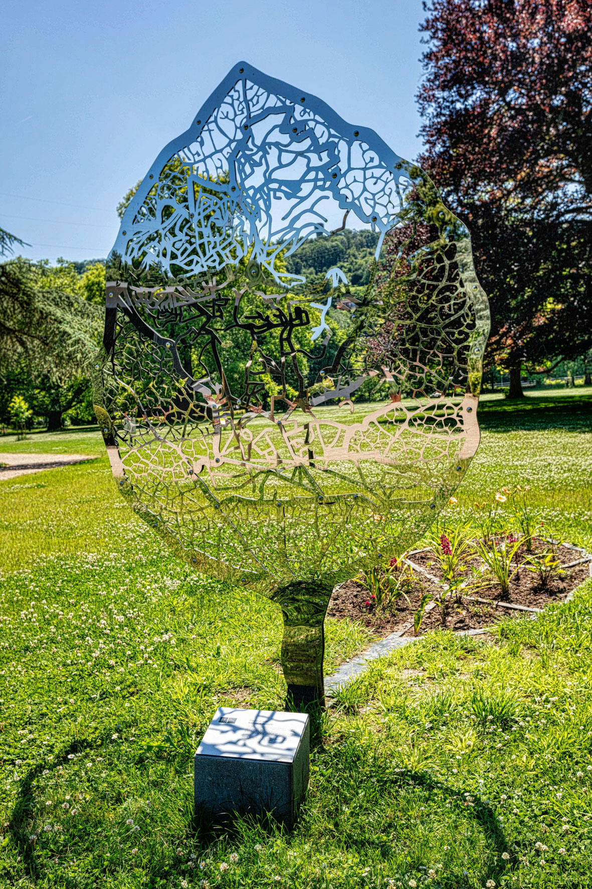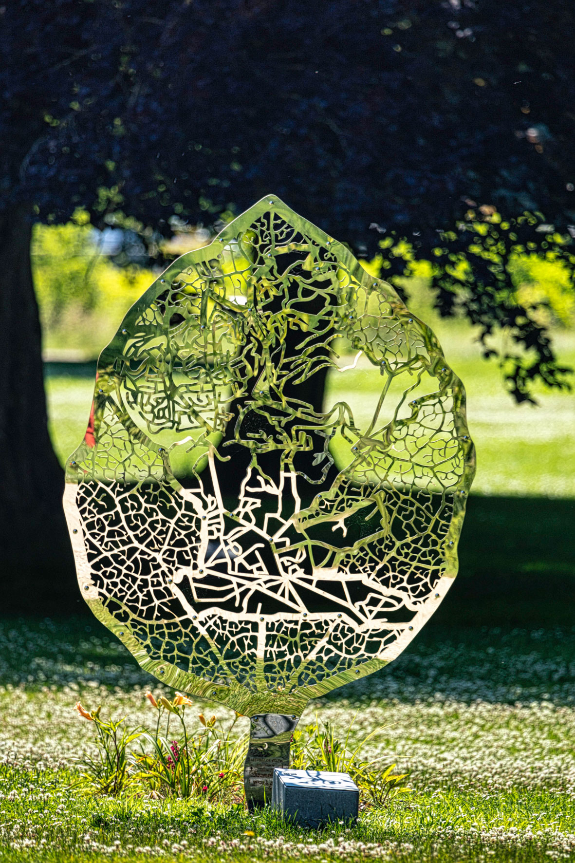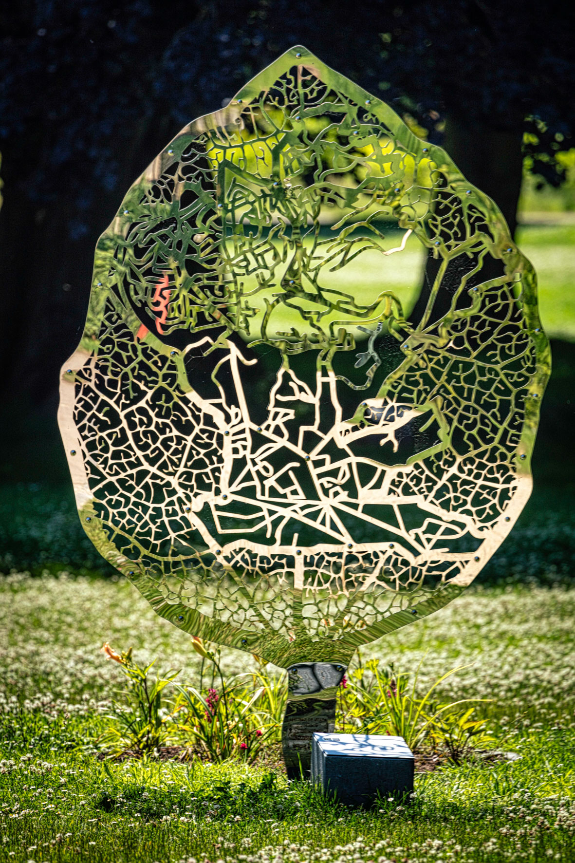 Nathalie Auzépy a imaginé une Feuille de ville à partir de la structure de Chaudfontaine. En réunissant deux concepts fréquemment opposés, la nature et les espaces habités, elle cherche à instaurer une dialectique nouvelle entre l’environnement naturel et urbain. La réunion de ces deux concepts se fait autour de la notion de structure en se matérialisant dans les nervures des feuilles et dans le plan des villes ou villages.